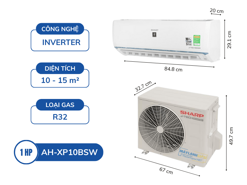 Máy lạnh Sharp Inverter AH-XP10BSW 1HP